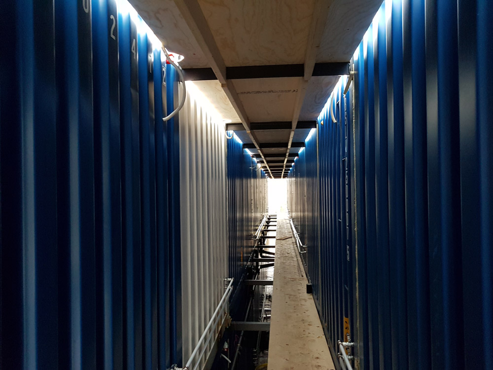 Containerstommens plåtskal ser till så att skadorna av ett eventuellt läckage begränsas till en modul.
