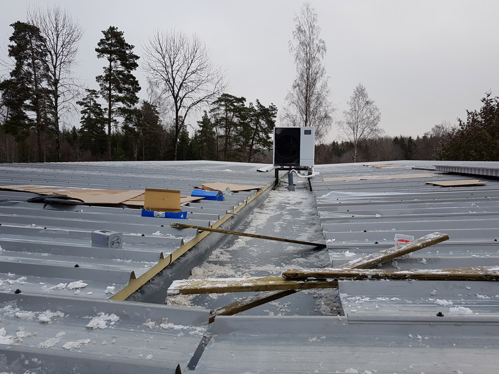 Tysta och energisnåla luftvärmepumpar med den senaste tekniken från Mitsubishi förser byggnaden med värme och varmvatten.