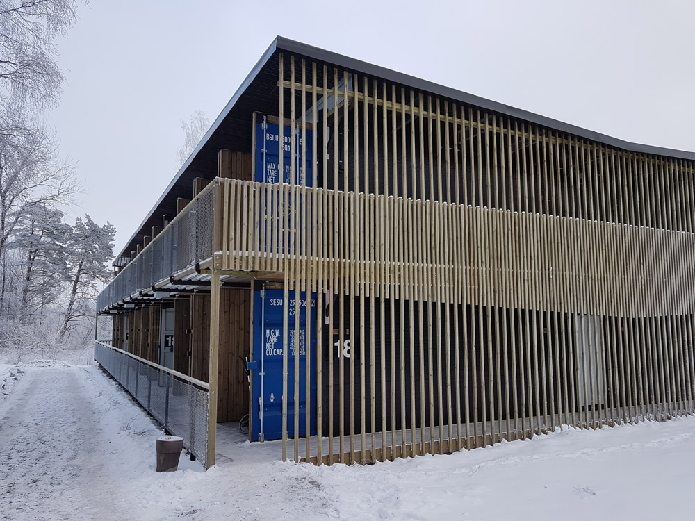 Modulerna går att stapla upp till 10 st på höjden vilket gör det ekonomiskt att bygga även på dyr mark.