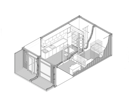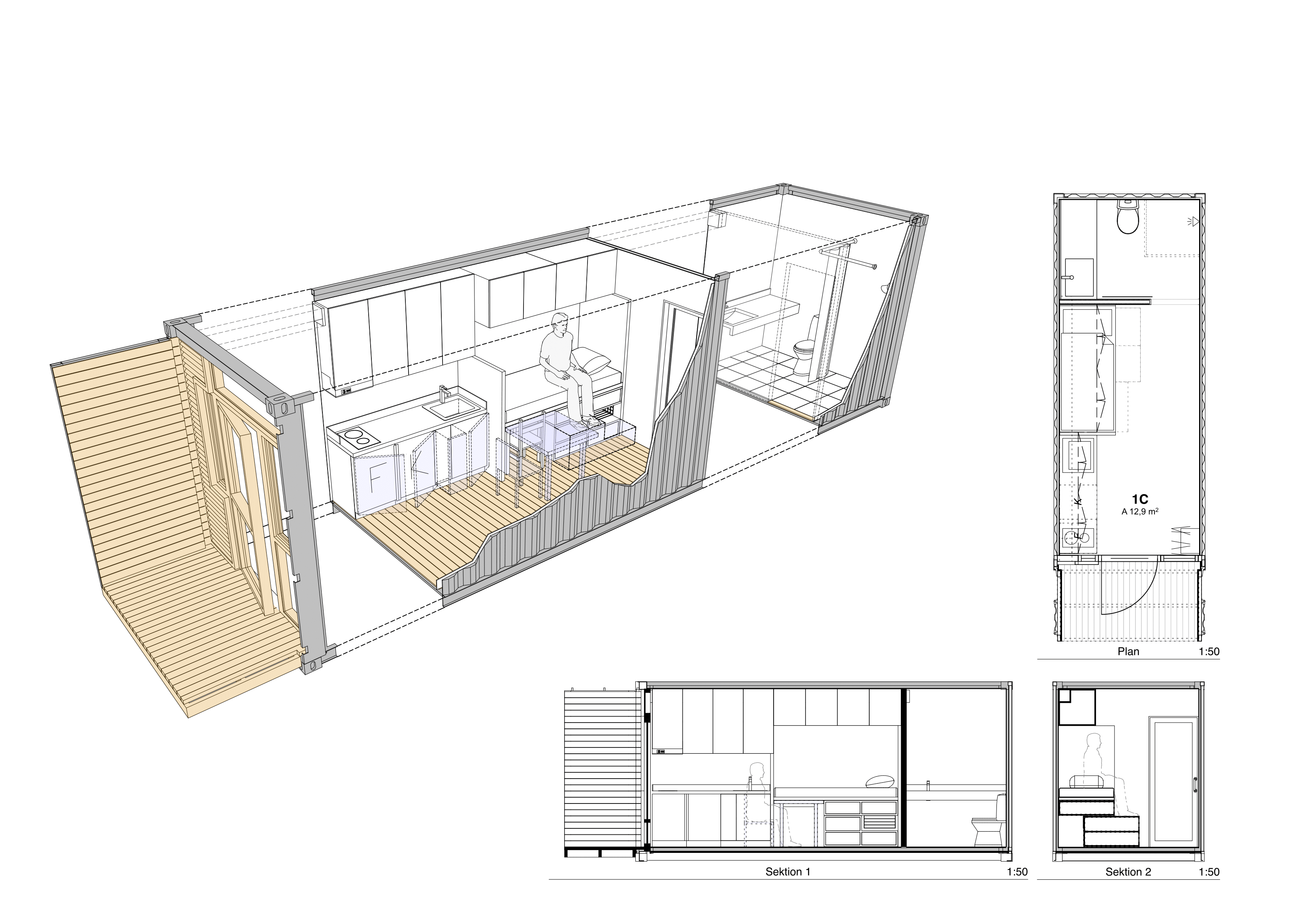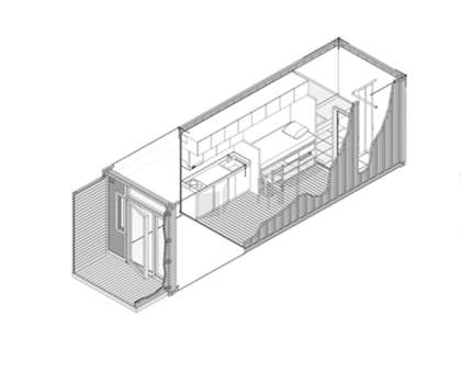 Sveriges minsta bostad - med eget kök och badrum, enkelsäng och gott om förvaring. En god grund för exempelvis nyanlända att etablera sig i samhället.