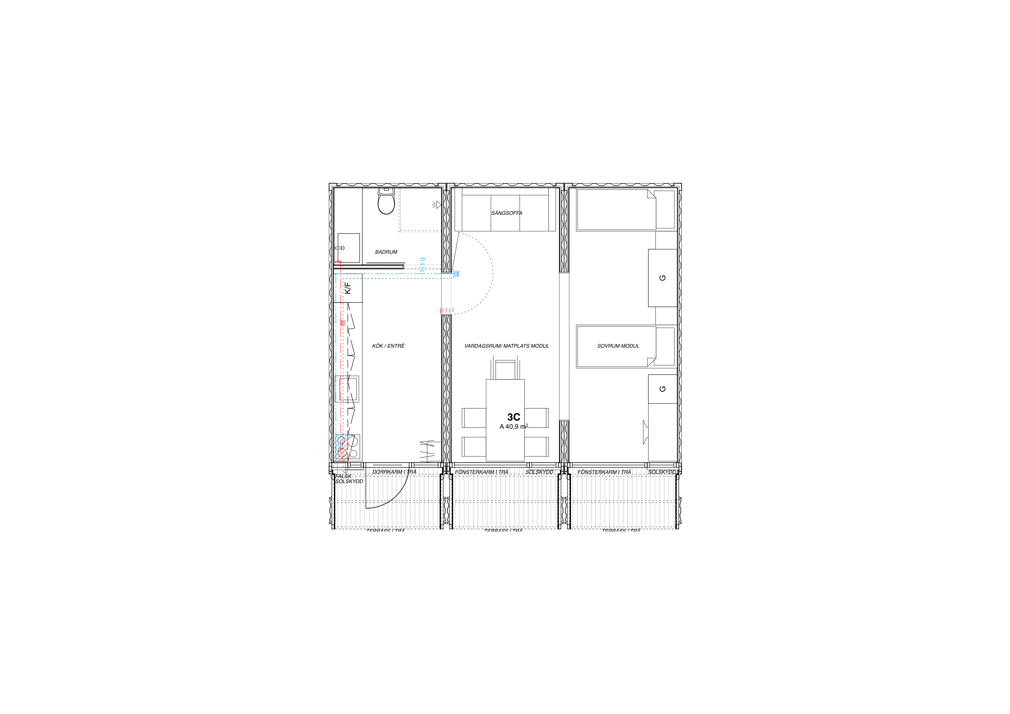 Modulerna uppfyller boverkets krav för bostäder och 3-rummaren är även fullt tillgänglig.